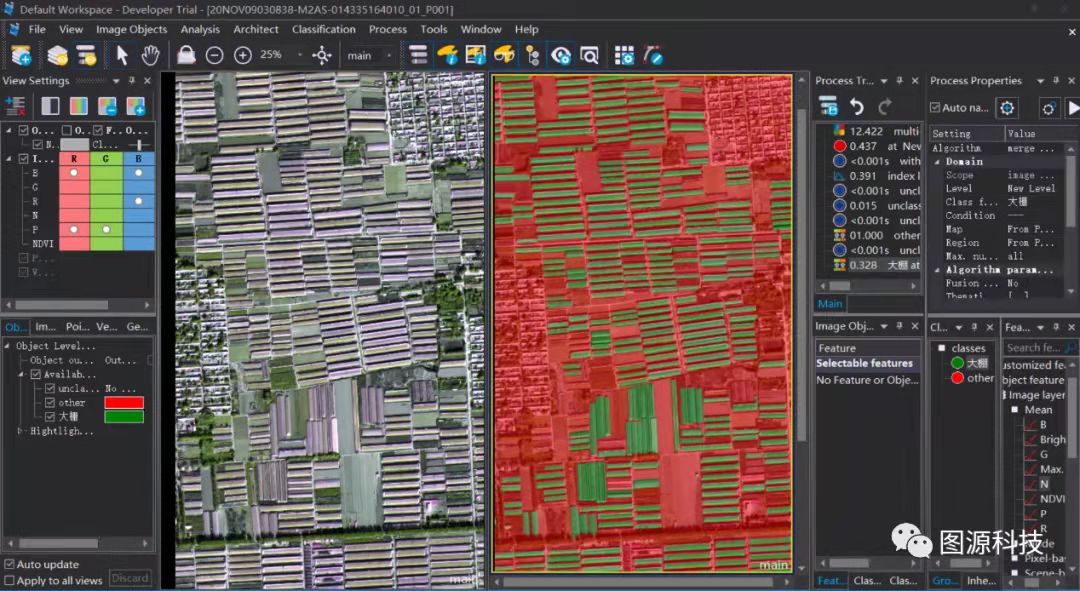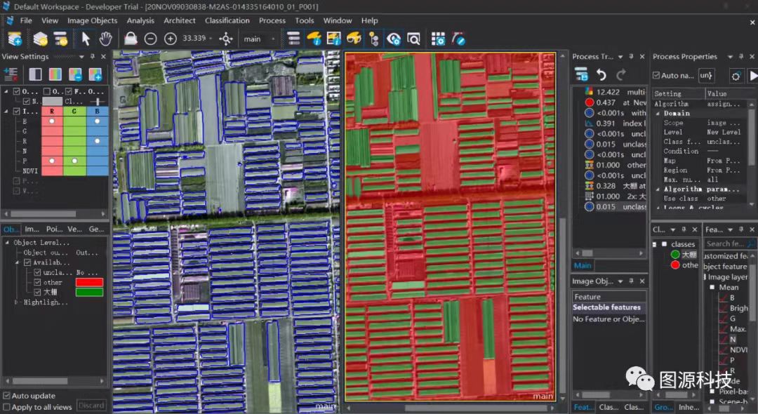 5.继续基于assign class 算法,利用明亮度、纹理、长宽比等特征对其进行反复分类与剔除,最终合并后的结果如图5
