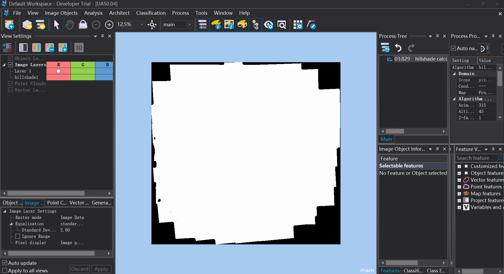 第一步:启动eCognition10.1版本,打开UAV.tif数据(高程数据)