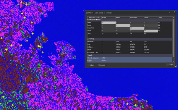 对现有的精度评价工具进行了现代化改进优化,以集成矢量衍生的验证样本,并添加了通过单个项目或工作区中多个项目的混淆矩阵来对可视化精度评估的技术。