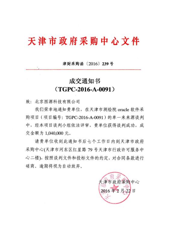 天津市测绘院oracle软件合作“