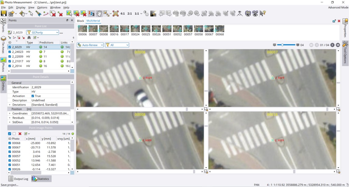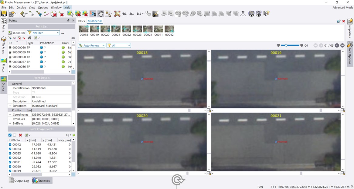 (10)打开多像片测量工具(PMT)检查控制点和连接点位置是否正确。查看报告,检查精度是否满足要求,如果满足,转换成功。