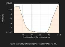 绘制的折线/形状的定义和高程剖面显示,选定区域内高点和低点的标识。