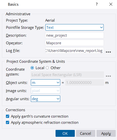 创建新项目时,会出现一个“基础/Basics”信息窗口和“项目编辑器/Project Editor”对话框,这表明本地坐标系假定要加载的所有数据必须存在于同一投影中。